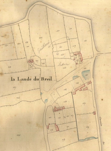 Sur le cadastre de 1812, le site de la Lande-du-Breil est formé de plusieurs bâtiments, au nord et au sud d'un espace libre ressemblant à un placis et occupé par un verger. Le cadastre de 1842 figure en pointillé un chemin au centre de la parcelle toujours cadastrée, qui dessert les différentes unités de propriété, un grand corps de logis au centre et des logements en alignement au nord, au sud-ouest et à l'est. Selon Paul Banéat, le manoir de la Lande-du-Breil est attesté en 1403, à l'ouest du chemin actuellement dit de la Lande-du-Breil. Il aurait été reconstruit à l'est du chemin, sans doute après son acquisition par les Le Breton en 1655.