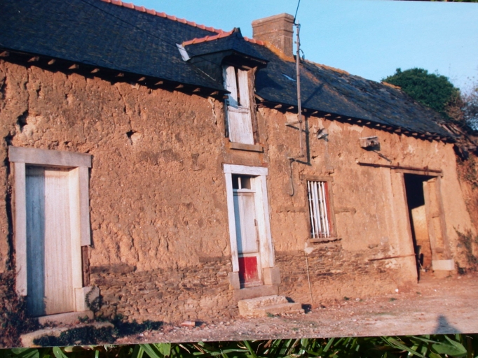 Plan allongé. Parti bas. Logis et parties agricoles accolées. Gros oeuvre en terre sur un solin de schiste.