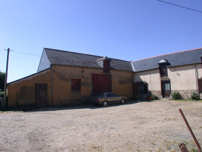 Plan en U. Logis de plan allongé. Parti bas.Logis et parties agricoles non accolées. Lucarnes pendantes. Gros oeuvre en terre sur un solin de schiste.