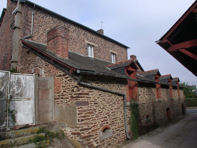 Gros oeuvre en moellons de schiste. Encadrements des ouvertures en granite et en brique. Colonnes de fonte pour la partie commerciale et pour l'entrepôt.