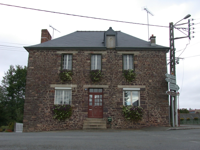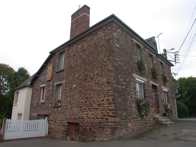 Gros oeuvre en moellons de schiste. Soubassement avec cellier. Toit à longs pans et croupe.