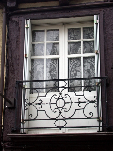 Maison à boutique du 16e siècle. La fenêtre de l'étage a été reprise à la fin du 18e siècle comme en témoigne le balcon de ferronnerie.