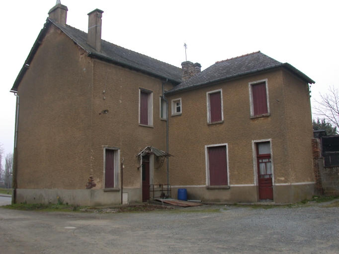 Gros oeuvre en moellons de schiste recouvert d'un enduit granuleux représentatif des années 1950. Les encadrements des ouvertures sont partiellement en brique. Marquise sur entrée arrière. Logis a étage surmonté d'un grenier avec lucarne pendante.