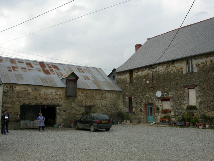 Cette ferme est composée de bâtiments construits en moellon de schiste et en bauge ; ils sont tous couverts d'ardoise. Le bâtiment principal abrite le logis, composé de deux pièces à feu en rez-de-chaussée, ainsi qu'une pièce à feu à l'étage, à l'ouest. Cette pièce à feu est éclairée par une porte haute possédant un volet en bois. Une étable en moellon de schiste se trouve en retour d'équerre, au sud-ouest du logis. Accolées à l'est du logis, s'élèvent une écurie et une porcherie en bauge. La grange, située au sud-est de la cour est également construite en bauge.