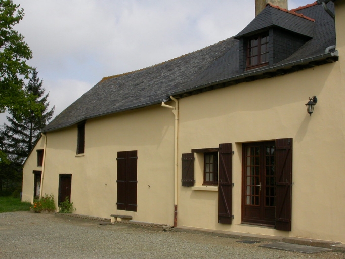 Cette ferme est composée de deux bâtiments accolés ; l'un est élevé en moellon de schiste, l'autre en bauge. L'ensemble des bâtiments est couvert d'ardoise. Il existe un contrefort en schiste sur la partie est du bâtiment. Par ailleurs, le comble à surcroît des bâtiments est percé de portes hautes. Une dépendance en terre existe à l'est.