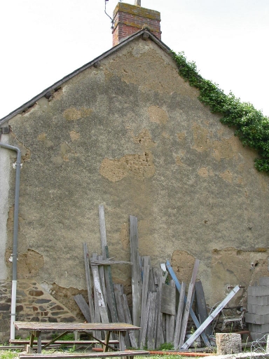 Les murs en bauge de ce bâtiment surmontent un solin composé de moellon de schiste. La toiture est couverte d'un matériau synthétique. Le comble à surcroît est percé d'une gerbière centrale. Il existe un cellier dans un appentis postérieur ainsi qu'une porcherie à l'est.