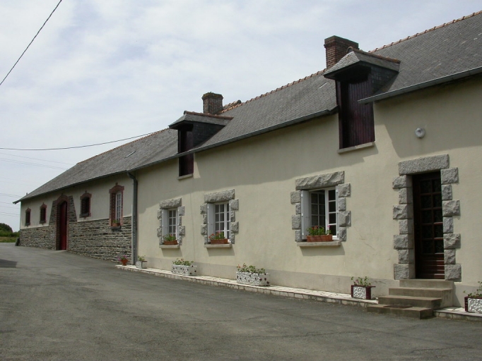 Les différents bâtiments composant cette ferme sont construits en bauge sur un solin de schiste. Ils sont couverts d'ardoise. Le bâtiment principal abrite un logis en partie centrale ; ce logis est bordé à l'ouest d'une étable et, à l'est, d'une écurie. Le pignon ouest de l'étable est percé d'une montjoie, une niche abritant une statue de la Vierge. Au sud, perpendiculairement à ce premier bâtiment, une grange est construite en bauge. Les vestiges d'un bâtiment entièrement construit en moellon de schiste subsistent au sud de la grange.