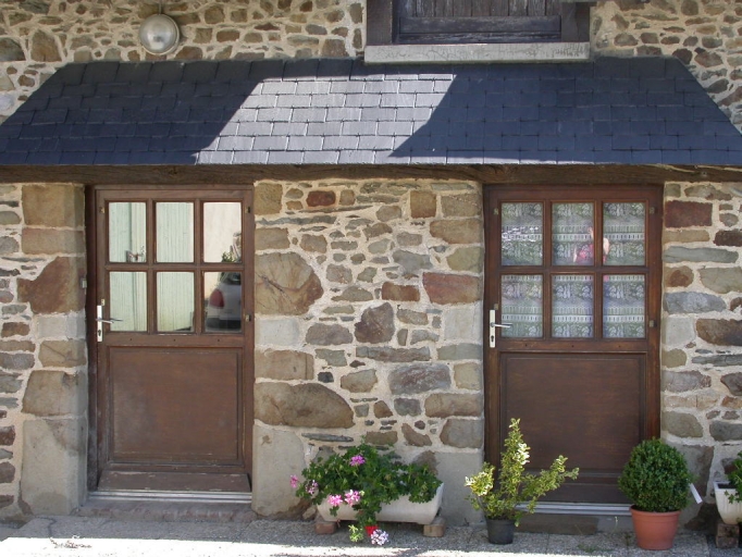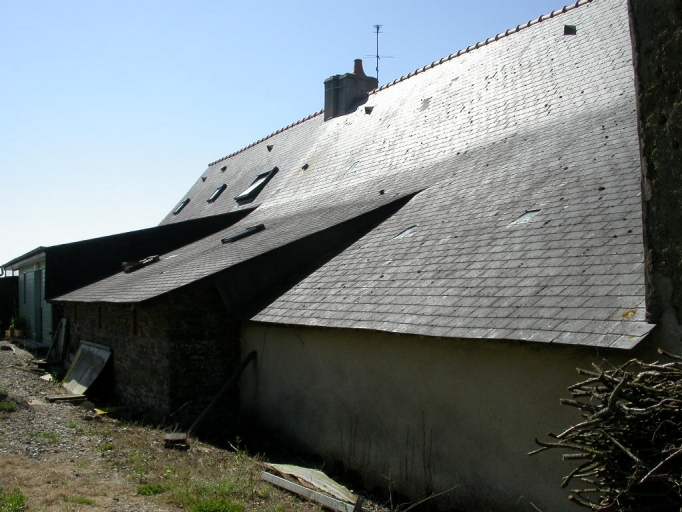 Les constructions de cette ferme présentent une maçonnerie de moellon de schiste d'une part et des murs en bauge d'autre part. Le logis est accolé d'une étable et de porcheries à l'ouest. Il possède un cellier dans un appentis postérieur. Une grange se trouve face au logis, au sud ; elle est construite en bauge et couverte d'ardoise.