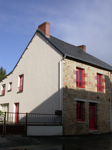 Cette maison est construite en moellon de grès et couverte d'ardoise. Les encadrements de baies sont composés de brique polychrome et les linteaux sont en ciment.