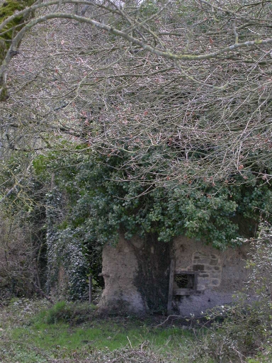Ce moulin, actuellement en ruines, était construit en terre sur un solin de moellon de grès.