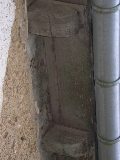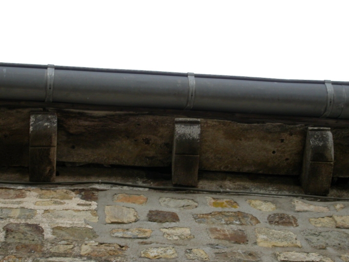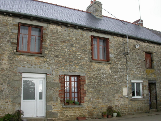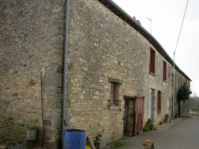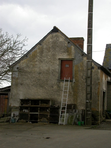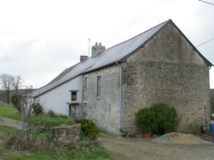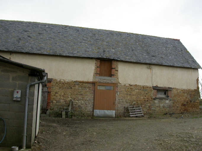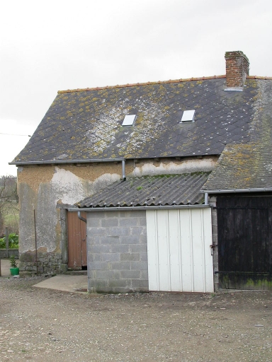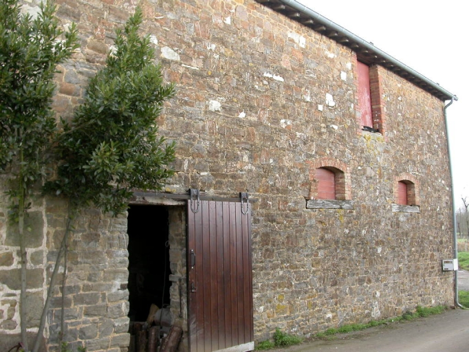 Le bâtiment principal de la ferme est construit en moellon de grès et couvert d'ardoise. Il possède un haut surcroît percé de quelques portes hautes. De plus, sur la partie centrale, il existe une corniche composée de corbelets en bois sculptés. Le logis correspond d'ailleurs à la partie centrale, la souche de cheminée indique son emplacement ; à l'arrière un cellier se trouve dans un appentis. De part et d'autre du logis, il existe une étable à l'ouest et une grange à l'est. Face à la grange, un bâtiment abrite un poulailler et une porcherie. Le fournil est construit en terre au sud-ouest de la cour. Enfin, à l'ouest, il existe une autre étable édifiée en moellon et en terre enduite.