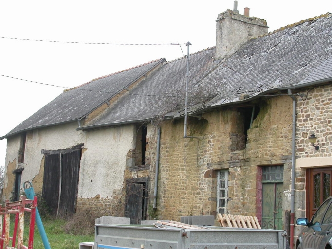 Cet alignement de plusieurs bâtiments présente des parties construites en moellon de grès et d'autres élevées en bauge. La toiture est couverte d'ardoise. Il existe du sud au nord, une grange, un cellier, un logis et une ancienne étable.