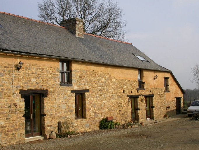 Ce bâtiment est principalement construit en moellon de grès, les murs ont été surélevés en terre. La toiture est couverte d'ardoise ; il existe un comble à haut surcroît percé de portes hautes. Les baies présentent majoritairement des linteaux en bois.