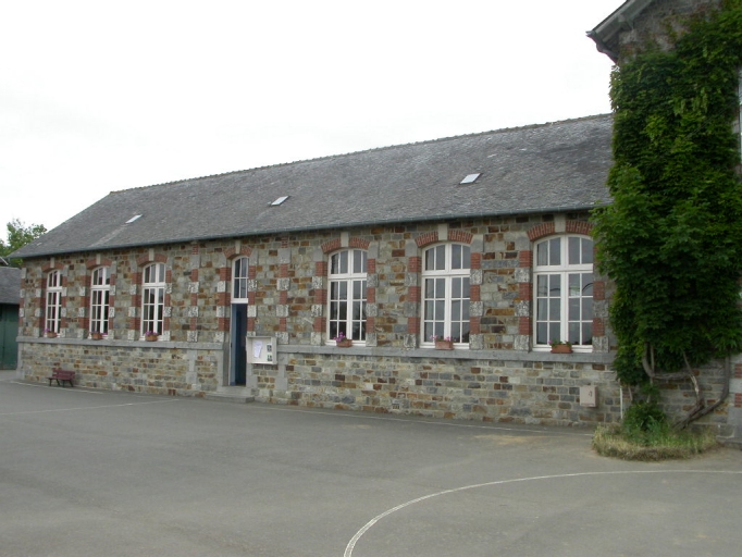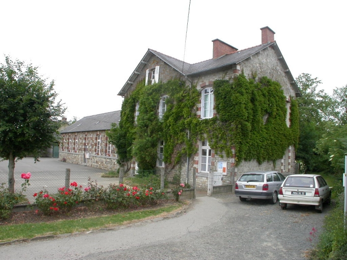 Cette école a vraisemblablement été construite un peu avant celle située en face. La partie ouest du bâtiment était réservée aux salles de classe et à un vestiaire alors que la partie est abritait le logement de l'instituteur divisé en un vestibule, une chambre, une cuisine et une salle à manger au rez-de-chaussée. A l'étage, se trouvait un cabinet ainsi que deux chambres. Les plans de cette maison d'école de filles sont conservés aux archives départementales d'Ille-et-Vilaine. Ils datent du 9 février 1885 et sont de l'architecte Leverrier.