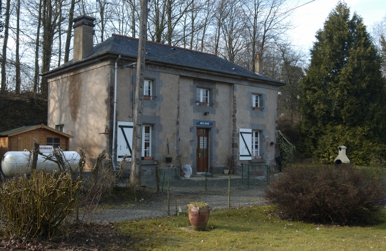 Les murs de la maison sont complètement enduits. Une clôture en bois entoure la maison. Un décroché en retrait d’une longueur de 4 m au centre de la façade est visible. Sur la façade principale, deux grandes fenêtres de deux vantaux et quatre carreaux encadrent la porte avec imposte. Trois petites fenêtres de deux vantaux et deux carreaux sont les ouvertures de l’étage. Les linteaux et les pierres d’appuis des fenêtres et de la porte sur la façade sont en granite. L’encadrement est fait de pierres harpées de même longueur. En façade arrière, une fenêtre est encadrée par du granite à l’étage, tandis qu’au rez-de-chaussée, la fenêtre dispose de jambages en brique. Une fenêtre sur le mur pignon est a un appui en béton.