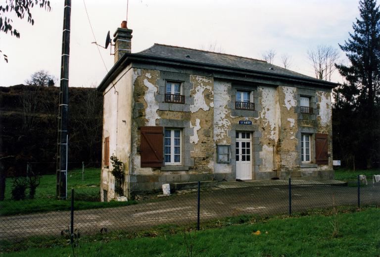 Sur la façade, deux grandes fenêtres de deux vantaux et quatre carreaux encadrent la porte avec imposte. Trois petites fenêtres de deux vantaux et deux carreaux sont les ouvertures de l’étage. Une barrière en bois est située devant chaque fenêtre. Les linteaux et les pierres d’appuis des fenêtres et de la porte sur la façade sont en granite. L’encadrement est fait de pierres harpées de même longueur. Une fenêtre placée sur la façade arrière est encadrée par du granite à l’étage, tandis qu’au rez-de-chaussée, les deux fenêtres en façade arrière disposent de jambages en briques. L’une dispose de pierres harpées. La fenêtre située sur le mur pignon sud dispose d'un appui en béton.