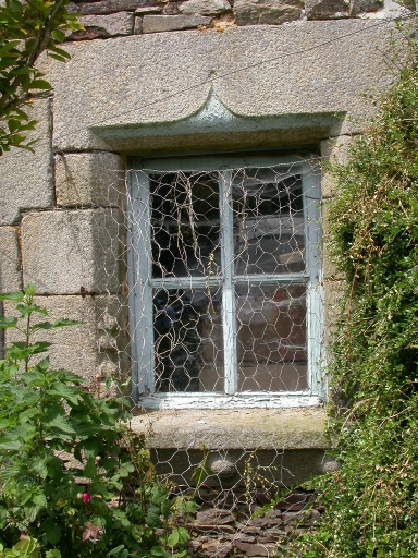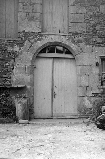 Maison construite en moellon de grès et de schiste rehaussée en terre. Les encadrements chanfreinés des ouvertures sont en granite. La porte est en plein cintre et la fenêtre du rez-de-chaussée a un linteau droit à accolade, un appui saillant décoré de boules et des bases sculptées.