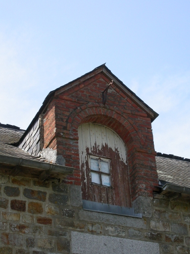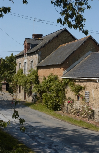 Maison construite en pierre de taille de grès. Les encadrements des ouvertures et le chaînage des angles sont en granite, tandis que la porte haute pendante est en brique. La façade arrière est élevée en bauge.
