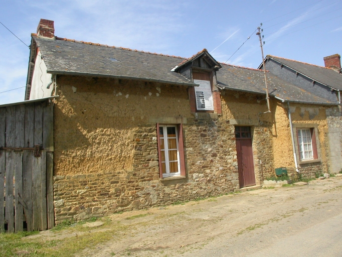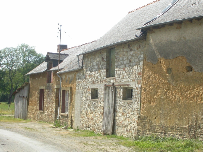 Cette ferme est élevée en bauge sur un soubassement en moellon de grès variant de hauteur près des ouvertures. Le grenier est percé d'une porte haute pendante encadrée de brique.