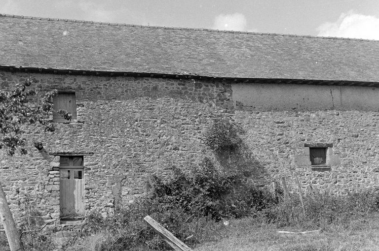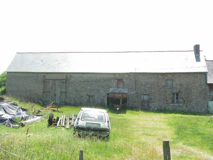 Le logis et l'étable sont construits en moellon de grès et de schiste et en terre pour le haut des murs. Par contre, la grange, le fournil et le cellier sont construits majoritairement en bauge sur un solin de moellon de grès. La façade sud présente une porte bouchée en anse de panier et une fenêtre avec un appui saillant mouluré.