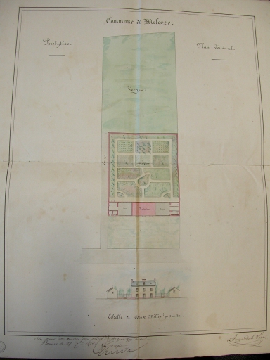 A.D. Ille-et-Vilaine. Série O. Fonds Edifices publics : Grands formats, Presbytère, plan général, Melesse : 2 O 174/31 (1853).