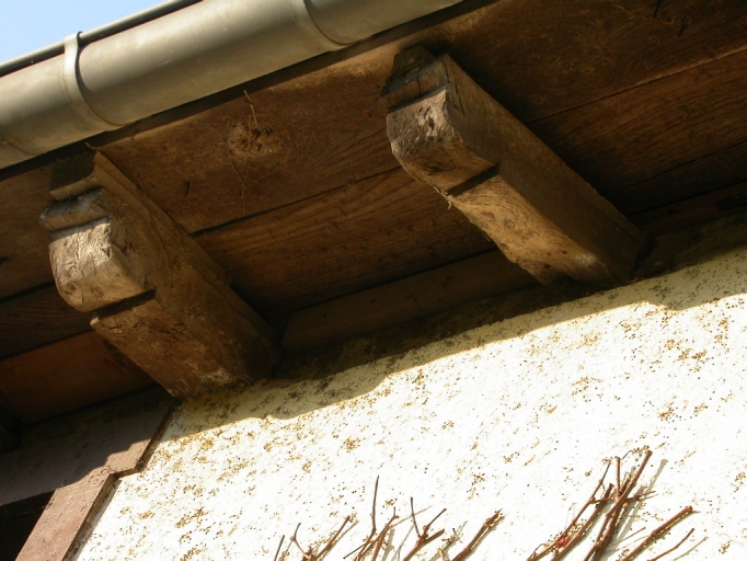 Ferme élevée en terre sur un soubassement de grès. Carrées de bois pour les ouvertures.