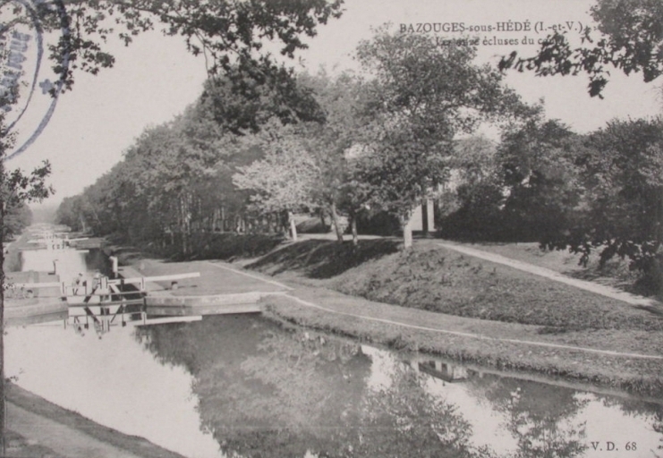 En ce qui concerne le territoire de la commune de Hédé, il compte onze écluses distantes l'une de l'autre de 183 à 319 mètres, le tout sur une longueur de 2, 161 kilomètres pour rattraper une dénivellation de 27, 06 mètres.