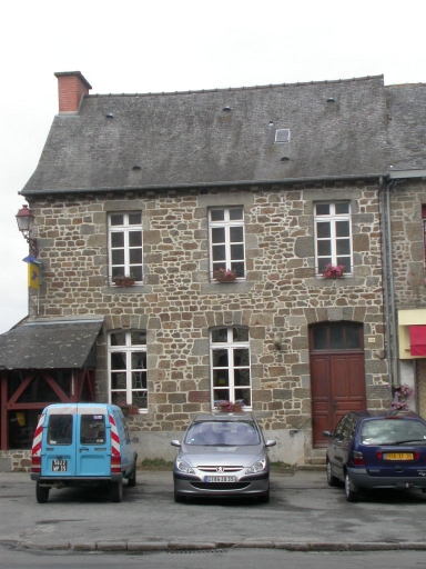 La construction de cette maison est datable de la fin du 17e ou du début du 18e siècle. En effet, la corniche à modillons de granite, la forte pente de toit et le coyau sont des éléments architecturaux propres à cette époque de construction. Par ailleurs, Paul Banéat mentionnait, au début du 20e siècle, l'existence d'une maison à porche au sud-ouest de la place. Il semble bien qu'il s'agissait de celle-ci car, sur le premier cadastre de la commune datant de 1835, une avancée est dessinée à l'avant de cette maison. De plus, une maison à porche est figurée à cet endroit sur le plan de la ville en 1680. Cette construction a été fortement modifiée vers 1840, en attestent des documents d'archives qui consistent en des plans de ce bâtiment. Vers 1840, il est signalé que l'on souhaitait acquérir les terrains et le bâtiment pour y établir une mairie et une justice de paix. Le devis des travaux à effectuer sur ce bâtiment pour en faire la mairie s'élevait à 34 429 francs. Une carte postale du début du 20e siècle, nous montre qu'à cette époque, la mairie de Hédé était dans ce bâtiment.