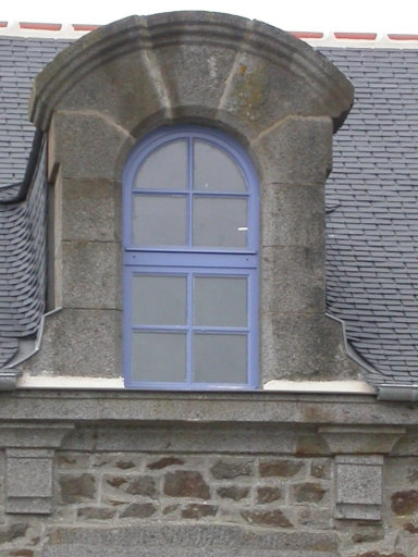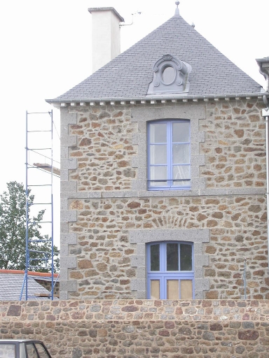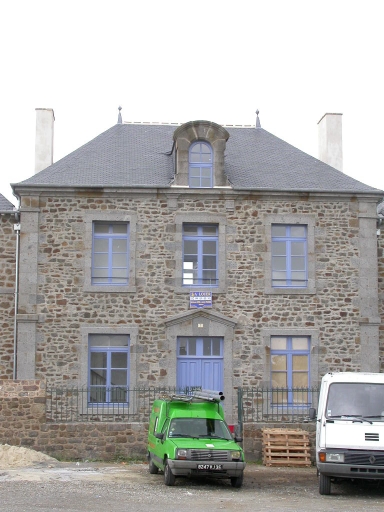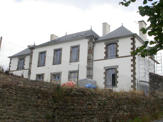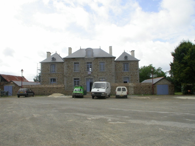Cette ancienne école est composée de trois corps de logis distincts ; un corps central et deux corps latéraux. Ils sont construits en moellon de granite ; la façade postérieure est enduite. Ces trois parties sont couvertes de toits à croupes indépendants les uns des autres et surmontés d'épis de faîtage. Le corps central est percé de trois travées composées de baies à encadrements de granite. La porte est surmontée d'un fronton triangulaire ; la lucarne centrale en granite est en plein cintre. Les corps latéraux sont rythmés par une travée chacun ; les baies qui constituent ces travées sont en arcs légèrement cintrés. Le comble de ces deux corps est percé d'un oculus en zinc.