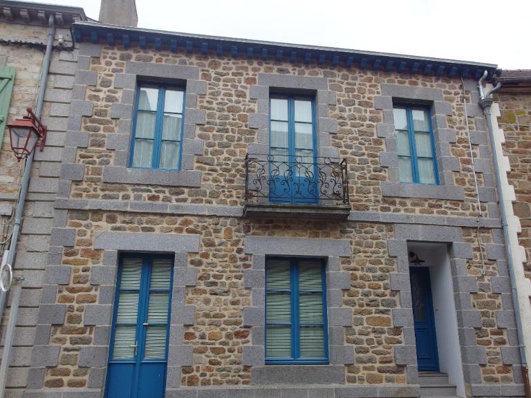 La maçonnerie de cette construction est composée de moellon de granite ; les encadrements de baies, chaînages d'angles et bandeaux sont en pierre de taille. La façade est percée de trois travées ; la baie centrale de l'étage possède un balcon en fer forgé. Il existe une corniche composée de corbelets en bois sculptés.