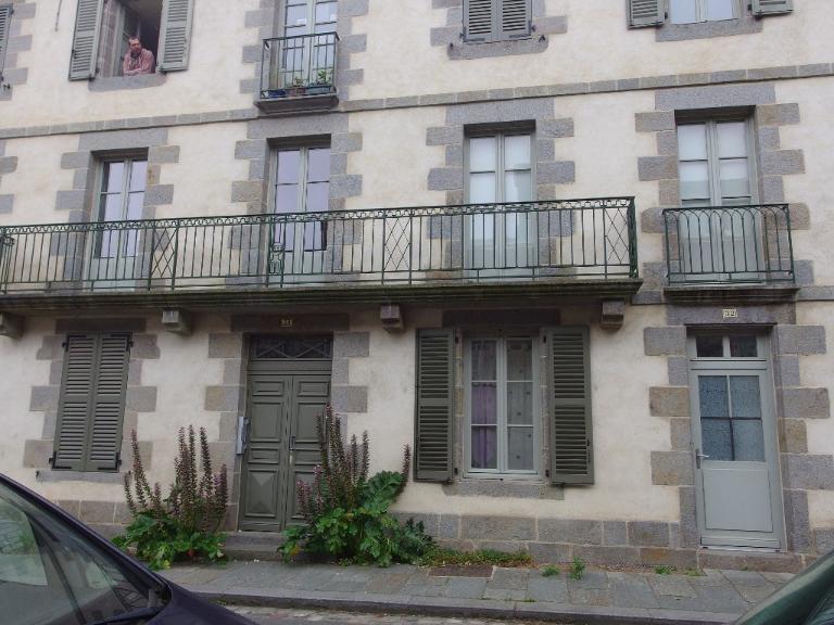 Ce bâtiment possède une maçonnerie de moellon de granite enduit en façade. Il est couvert d'un toit à longs-pans en ardoise et s'élève sur quatre niveaux : rez-de-chaussée, premier étage, second étage et comble. La façade est percée de cinq travées, composées de baies à encadrements de granite. Les baies du premier étage donnent accès à un balcon en fer forgé daté de 1833. A l'arrière, il existe une aile en retour d'équerre.