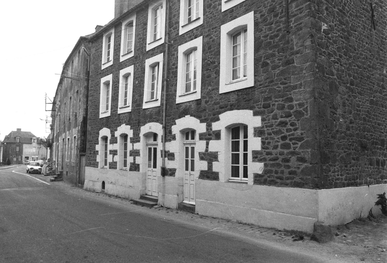 Ce bâtiment est élevé en moellon de granite ; sa façade est percée de cinq travées de baies. Les baies du rez-de-chaussée possèdent des linteaux cintrés composés de plusieurs claveaux de pierre ; les baies des deux étages sont des carrées bois. Le toit est couvert d'ardoise et possède un léger coyau. Au sud-est, s'élève un petit bâtiment perpendiculaire au premier. Un porche donne accès dans une cour arrière.