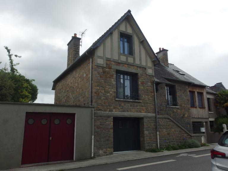 Cette maison est un peu plus récente que les autres constructions de la rue, en effet, sa construction est plutôt datable des années 1940-1950. En témoignent, le plan, la présence d'un garage, la tête de pignon en faux pan de bois...