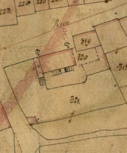 La construction de cette maison pourrait remonter au 18e siècle. En effet, la pente de toiture importante ainsi que le fait qu'elle soit représentée sur le premier cadastre communal témoignent de cette époque de construction. En 1835, lors de la réalisation du premier cadastre, cette maison possédait deux escaliers parallèles à la façade postérieure, ces escaliers donnaient accès à un perron qui permettait l'entrée dans le bâtiment. Les percements de la façade, réguliers et à encadrements de granite chanfreinés, semblent plutôt dater du milieu du 19e siècle.