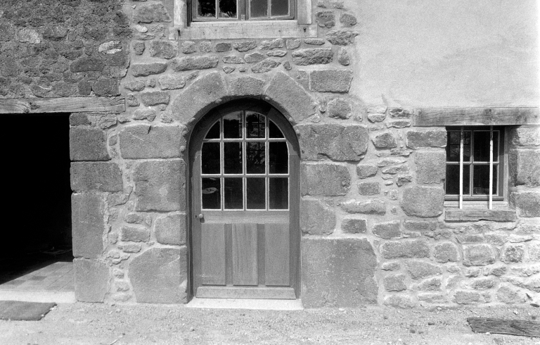 Cette ferme, accolée à sa voisine, est construite en moellon de granite et couverte d'ardoise. La porte du logis est une porte en plein cintre en granite décorée de boules. D'anciens refuges à porcs se trouvent dans l'alignement du logis, au nord.