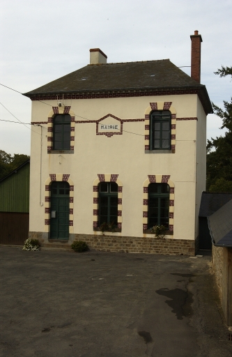 D'après des documents d'archives, la construction de la mairie-école daterait des années 1860. Le rez-de-chaussée était occupé par une salle de classe et l'étage par une salle réservée à la mairie et par le logement de l'instituteur. La mairie, toujours d'après des documents d'archives, a été restaurée au cours des années 1920 par l'architecte rennais M. Poirier. L'aspect actuel de la mairie témoigne de cette époque où des travaux importants durent être menés (décor de brique...).