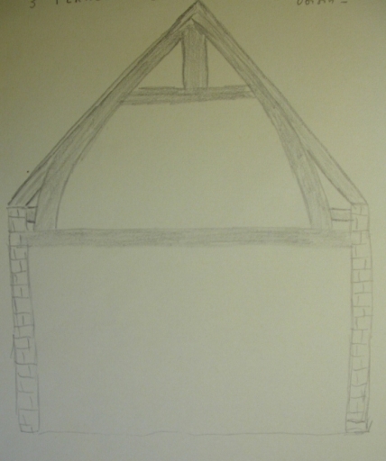Bien que très remaniée, l'architecture de cette maison témoigne encore d'une époque de construction ancienne qui pourrait remonter au début du 17e siècle. Lors d'une enquête d'inventaire du patrimoine menée en 1975, il existait encore une pièce à feu au rez-de-chaussée, possédant un vaisselier sur le mur gouttereau est et une cheminée sur le mur de refend sud. L'escalier se trouvait dans l'angle nord-est de la pièce et desservait l'étage, où se trouvait également une pièce à feu. La souche de cheminée sud était, à cette époque, décorée de denticules. La cheminée du rez-de-chaussée possédait une corniche, un arc au-dessus de la hotte, un linteau monolithe et un décor de visages sculptés. Tous ces éléments (vaisselier, cheminée décorée de visages...) sont propres à l'architecture de la première moitié du 17e siècle.