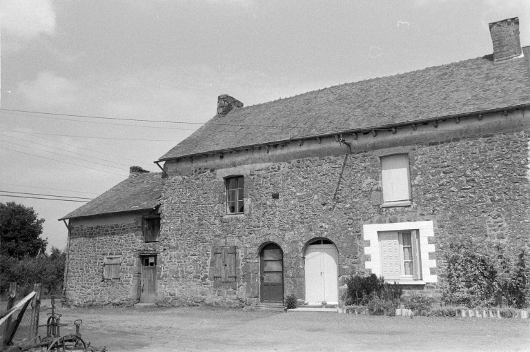 Cette construction en moellon de granite est couverte d'ardoise. La partie supérieure des murs est en terre enduite. L'accès au rez-de-chaussée se fait par deux portes jumelées en plein cintre.