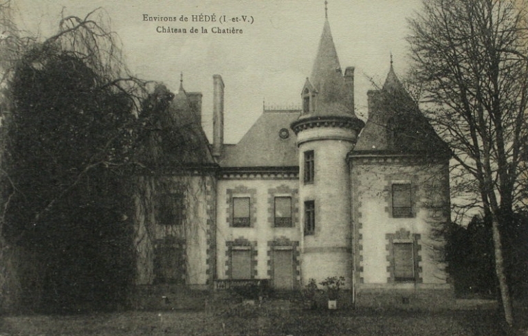 La construction de ce château remonte vraisemblablement à la fin du 19e siècle. En effet, en 1835, lors de la réalisation du premier cadastre de la commune, ce bâtiment n'existait pas encore. Pourtant il existait déjà un château de la Châtière à cette époque ; il a été remplacé par le bâtiment actuel à la fin du 19e siècle. L'ancien château possédait un portail, une fuie et une chapelle. Ces éléments sont visibles sur le cadastre de 1835. La chapelle avait été construite à la Châtière en 1644 par le seigneur du lieu à l'époque : Jacques Beschart. Plusieurs familles de propriétaires se sont succédées ; le château appartenait en effet aux Cheminart au début du 15e siècle, à la fin du 16e siècle, il était aux seigneurs de Couësbouc et au début du 20e siècle, il appartenait à la famille Alain des Beauvais. Les seigneurs de la Châtière avaient droit de banc et d'enfeu dans l'église Notre-Dame de Hédé. A la fin du 17e siècle, le manoir était composé d'un grand corps de logis dont la façade donnait à l'est et d'un autre corps de logis servant de boulangerie. Il existait aussi deux pavillons à l'entrée du lieu, qui était clos et entouré de douves et d'un étang servant à un moulin.