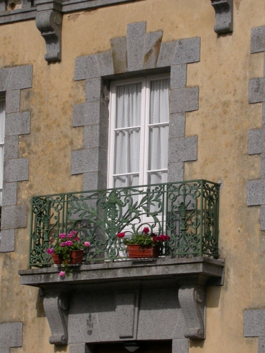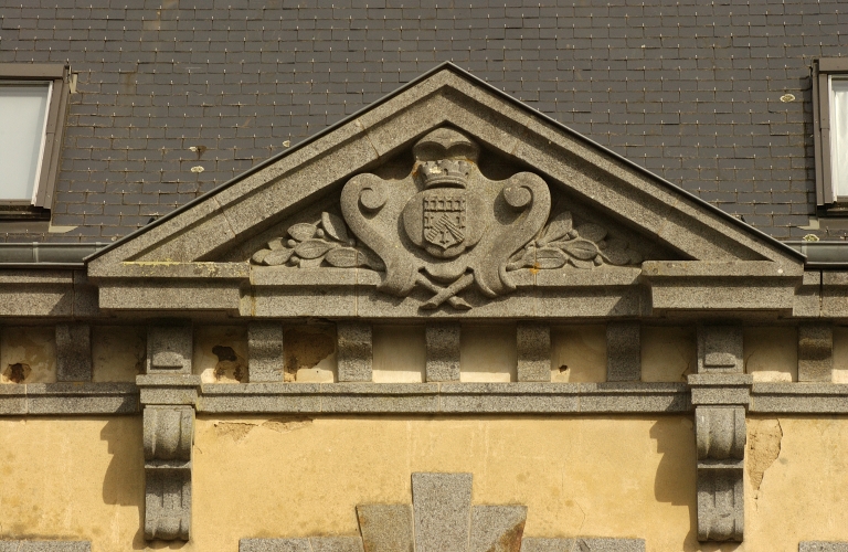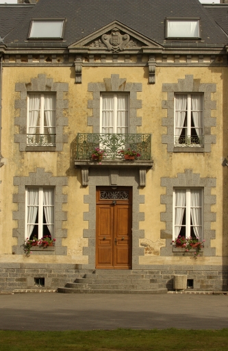 La maçonnerie de ce château est enduite ; seules les pierres de taille de granite du solin et les encadrements de baies sont visibles. Le bâtiment est composé de trois parties, un corps central couvert d'un toit à croupes et deux corps latéraux couverts de toits en pavillon. La toiture est surmontée d'épis de faîtage et de crêtes de toit. La façade est percée de cinq travées ; la travée centrale est précédée d'un perron et surmontée d'un fronton triangulaire portant un écu. Cet écu est celui de la ville de Hédé : les hermines symbolisent la fidélité de Hédé au duc de Bretagne et les deux rangées d'hermines signifient l'appartenance de la ville à la Bretagne. A l'arrière, une tour contenant un escalier en vis permet la desserte des étages.