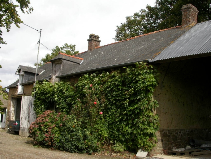 Cette ancienne ferme est composée de deux bâtiments perpendiculaires l'un par rapport à l'autre. Le bâtiment situé au nord correspond au logis ; il est construit en moellon de granite, couvert d'ardoise et possède des encadrements de baies en brique. Sous le toit du logis, se déroule une corniche composée de corbelets en bois sculptés. A l'est de la cour, se trouve un bâtiment construit en terre abritant une grange et une remise notamment.