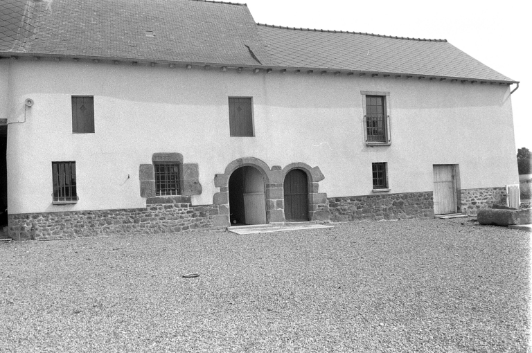 Cette ferme est composée de plusieurs bâtiments construits en terre enduite et couverts d'ardoise. La partie centrale possède des baies soignées à encadrements de granite : portes jumelées en plein cintre, fenêtre à linteau daté 1570... Les parties latérales sont réservées aux dépendances, un porche et un cellier à l'ouest notamment.
