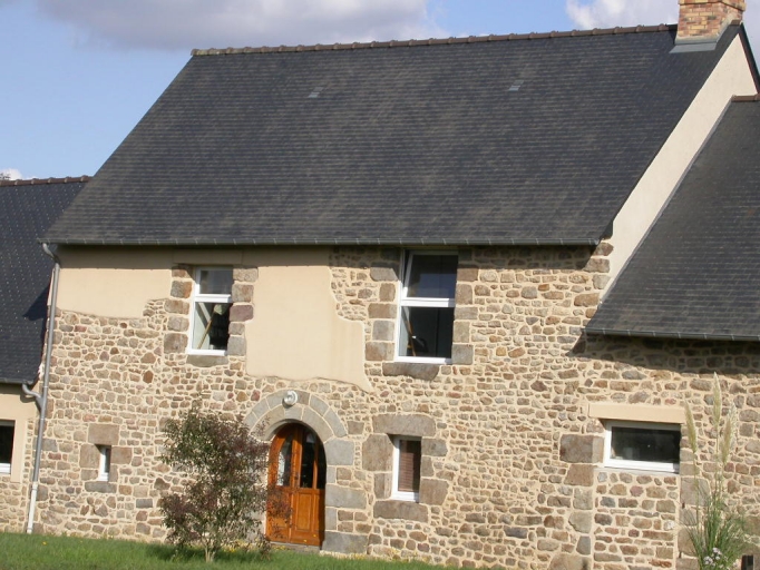 Ce bâtiment est construit en moellon de granite et en terre enduite ; il est couvert d'ardoise. La pente de toiture est importante. Les encadrements de baies sont en granite et la porte principale est une porte en plein cintre à double rouleaux.