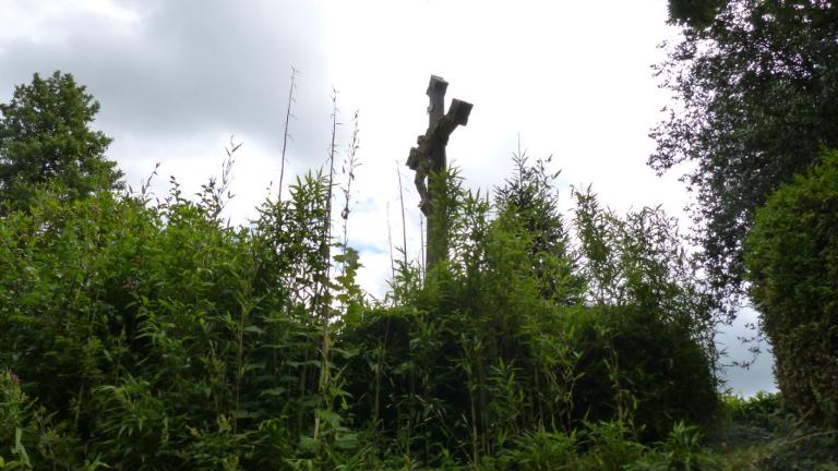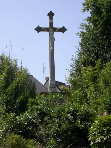 Ce calvaire en granite porte un Christ en fonte. Les bras et le fût de la croix se terminent en trilobe. Le socle porte l'inscription suivante : MISSION/DE/ 1909. Un cartouche porte une autre inscription : MISSION/1951.