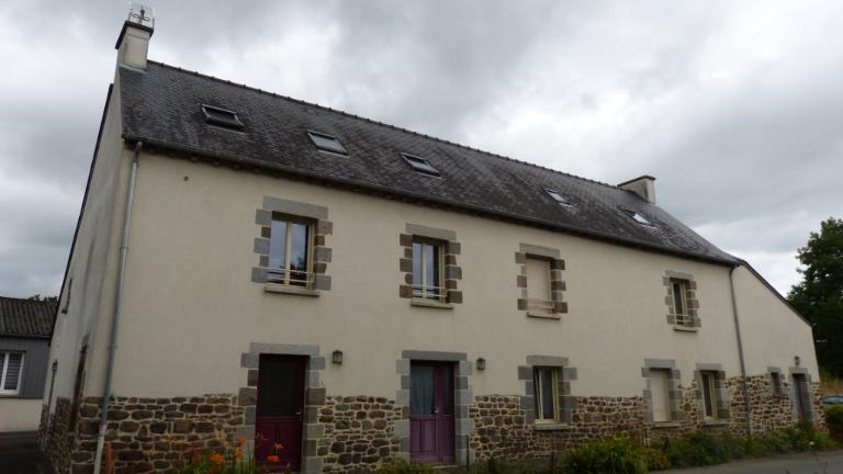 Ce bâtiment est construit en terre enduite sur un solin de moellon de granite ; il possède une toiture à longs pans en ardoise. La façade est percée de trois travées et le comble à surcroît est accessible grâce à l'existence de deux portes hautes pendantes. Un cellier se trouve dans un appentis postérieur.