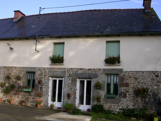Ce bâtiment est élevé en moellon de granite en partie inférieure alors que la partie supérieure des murs est en terre. Le logis est situé dans la partie est du bâtiment ; il est composé de deux pièces à feu. L'une des portes du logis possède un linteau sur lequel se trouve la date de 1788. La partie ouest de la construction abrite l'ancienne étable. A l'arrière, dans un appentis en moellon de granite et terre, se trouve le cellier. Une remise fait face au bâtiment principal au sud. Un point d'eau se trouve également au sud-est de la cour de la ferme.