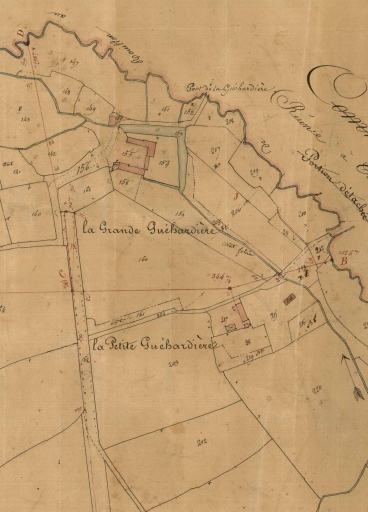 Bazouges-sous-Hédé. Section A, dite de la Bézardière, en deux feuilles, 1ère feuille, du n°1 au n°228, par Mr Clément, Géomètre de 1ère classe. [1835], échelle 1/2500 e. (A.D. Ille-et-Vilaine).
