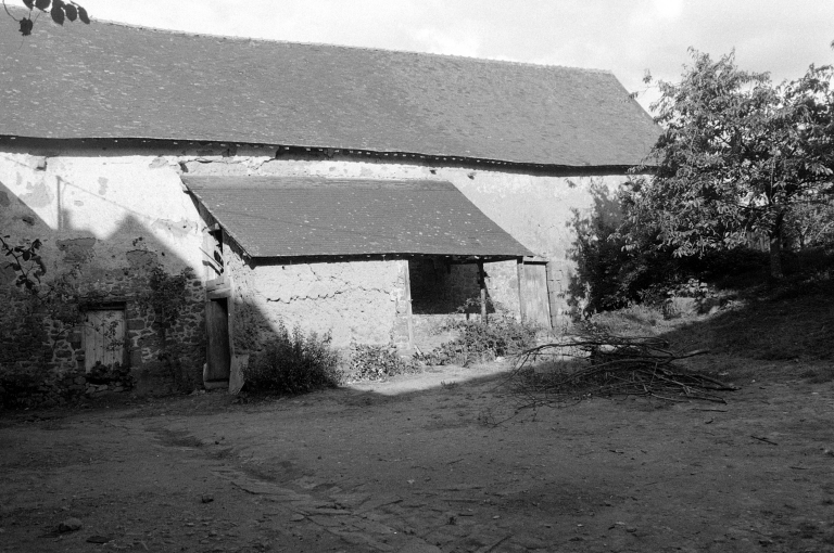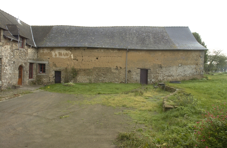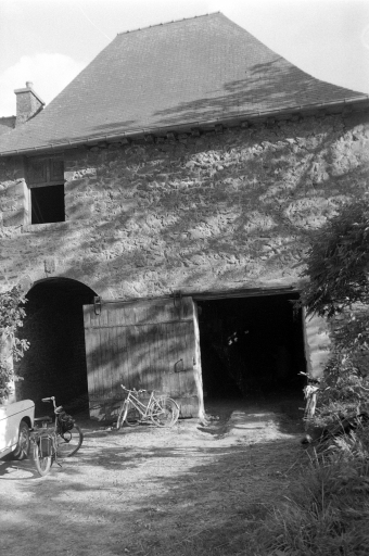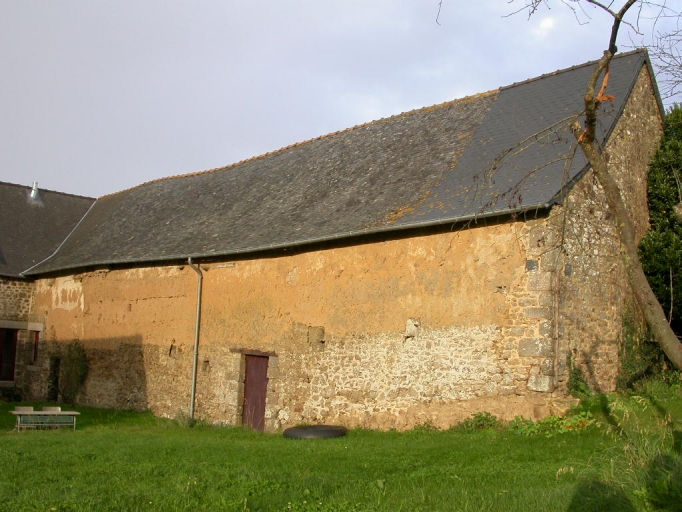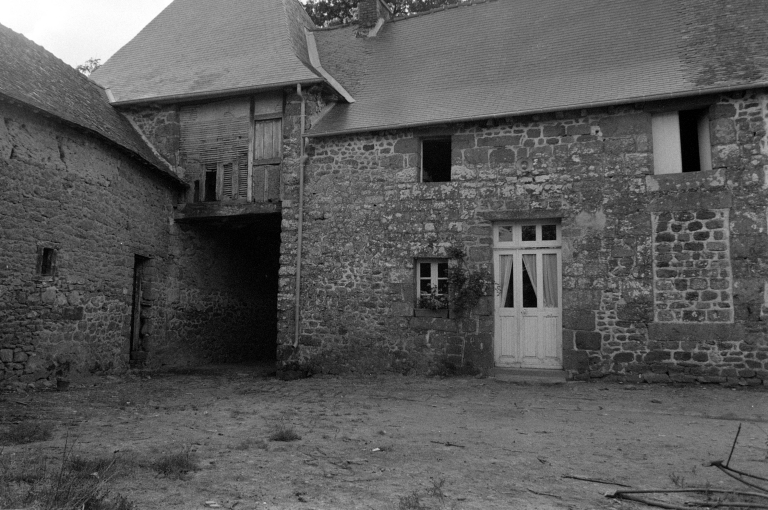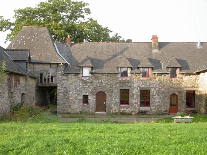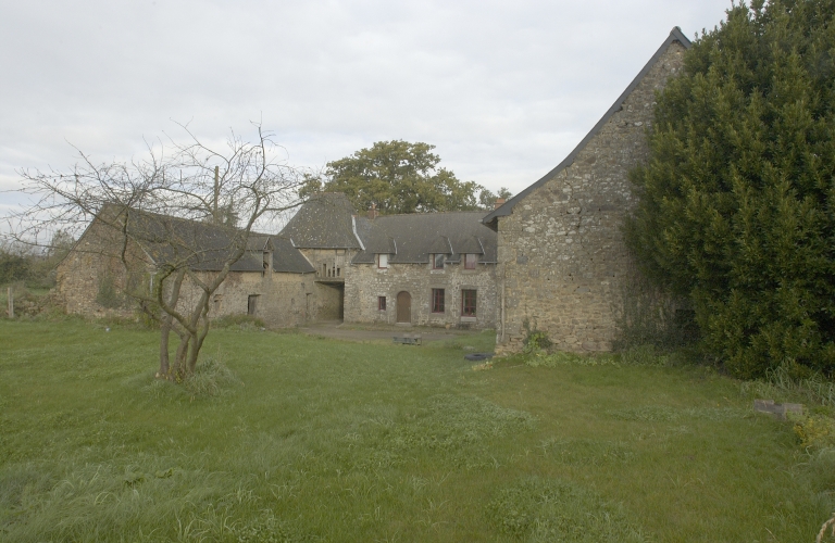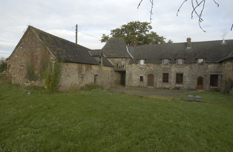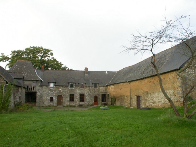 Les bâtiments de ce lieu sont construits en moellon de granite, en terre et en pan de bois. Ils forment un "U" et l'accès à la cour se fait grâce à un porche situé au nord-ouest. Ce porche est construit en pan de bois et possède une toiture à croupes en ardoise. Il est composé d'une pièce à feu dont l'accès se fait par une escalier en bois situé dans la partie nord du bâtiment fermant la cour à l'ouest. Ce porche est percé d'un arc en plein cintre au nord ; celui-ci est surmonté d'un écu.