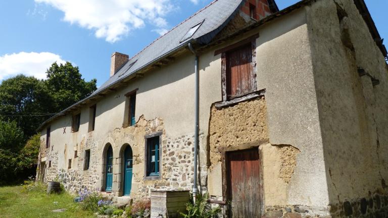 Ce bâtiment est construit en moellon de granite et en terre enduite. Il possède un toit à forte pente couvert d'ardoise et présentant un coyau important. Sous ce coyau, il existe une corniche composée de corbelets de bois sculptés. La partie centrale du bâtiment est percée de portes jumelées en plein cintre en granite.