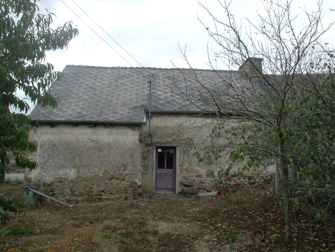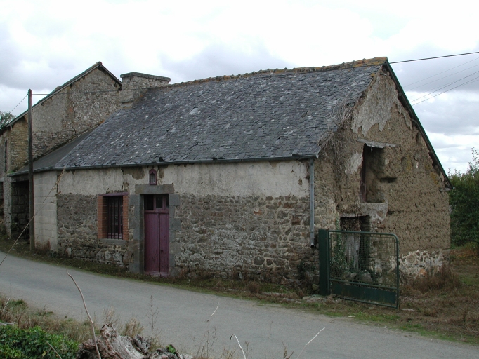 La maçonnerie est en moellon de granite sans chaîne en pierre de taille et en terre crue enduite. La façade conserve les travées d'une enseigne peinte : CAFE. La couverture est en ardoise.